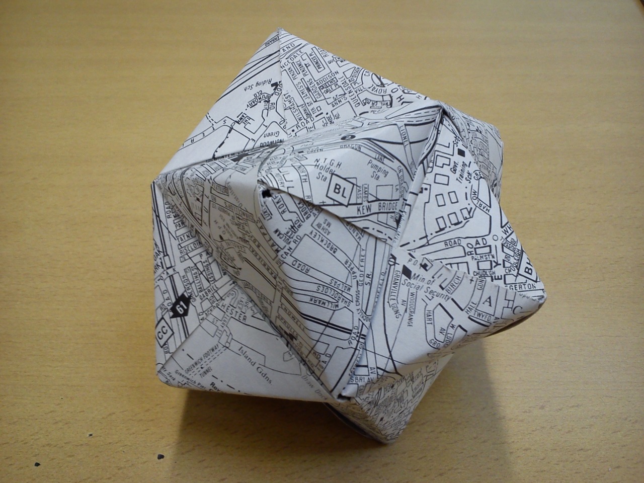Origami 12 Snobe Unit Octahedron Using London Street Map Paper