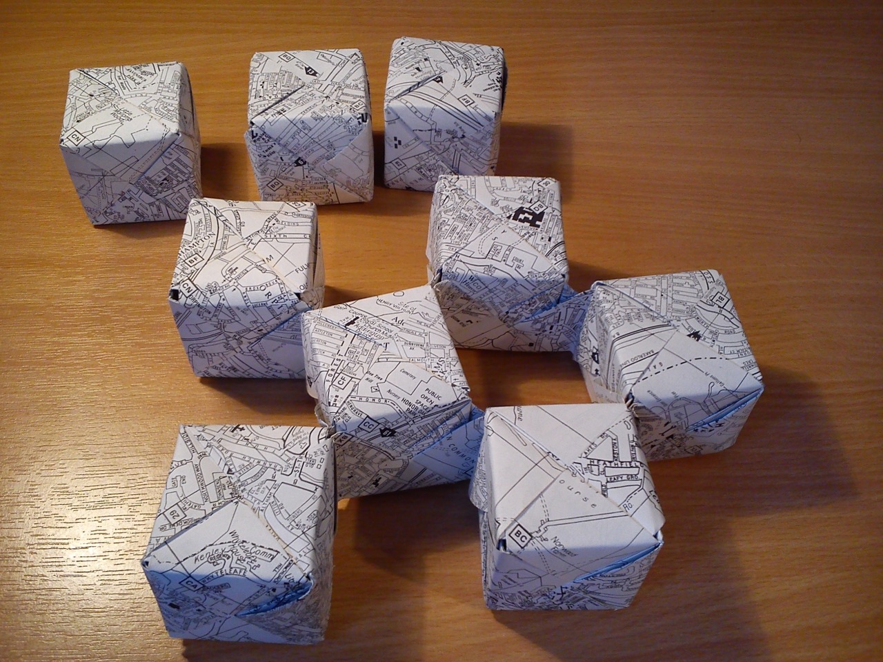 « Origami 30 Snobe Unit Icosahedron Using London Street Map Paper